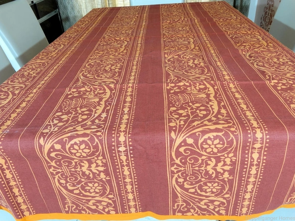 This 6 Seater Designer Cotton Table Cover is made up of designer floral fabric and plain fabric border attached to it's sides. Ideal for 6 Seater Dining Table. Beautifully designed to suit for an elegant look on table.