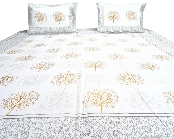This Indian Ethnic Bed Sheet has Autumn Trees Printed of it. The use of Golden color for Autumn Trees on white and grey color bedsheet makes it look very elegant and stunning.