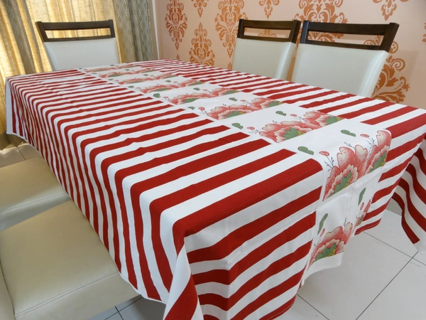 Ideal for 6-Seater Dining Table. The center has Colorful Floral printed fabric. Beautiful stripe printed fabric is stitched on its both sides.