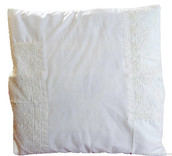 This Elegant White Cotton Cushion Cover has Stunning Lucknowi Chikankari hand work done on it. Chikankari is a delicate and artfully done hand embroidery on a variety of textile fabric. Usually white thread is embroidered on cool, pastel shades of light muslin and cotton garments.it is one of Lucknow's best-known textile decoration styles.