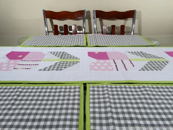 This Designer Table Runner comes with Six Placemats with it’s edges secured with Bias tape binding.